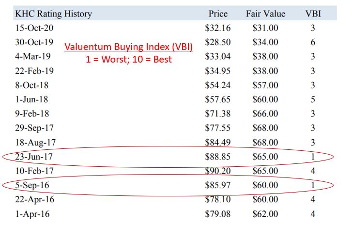 Image: Years ago, shares of Kraft Heinz registered a rating of 1 on the Valuentum Buying Index (VBI) on two separate occasions, highlighting the company’s overpriced nature and weakening technicals. Rare and extreme ratings on the VBI, 1 = worst; 10 = best, tend to be the most informative and/or the most actionable for investors. There are just too many net cash rich, free cash flow generating powerhouses with tremendous competitively advantaged business models tied to secular growth tailwinds that taking a flier on an overleveraged turnaround such as Kraft Heinz almost feels irresponsible. That said, shares yield ~5.2% as of this writing, so income investors might find a decent risk reward at the right price. With a 27% stake, Buffett's Berkshire Hathaway seems to think so. By Brian Nelson, CFA Kraft Heinz (KHC) has been somewhat of an embarrassment for Warren Buffett’s Berkshire Hathaway (BRK.B), which is still the company’s largest shareholder at a 27% stake. KHC’s shares had been massively overpriced years ago, and on two separate occasions (September 2016, June 2017), they registered a 1 on the Valuentum Buying Index (VBI), exchanging hands in the high $80s at the time (1 = worst). After Kraft Heinz’s third-quarter report, released October 29, the company is now trading just north of $30 per share (a far cry from its glory days). The company is one of a number of great examples of the power of the VBI (in this case, in highlighting stocks poised for a collapse). Though Kraft Heinz may not have been the best idea out there for investors years ago, the firm is taking the necessary steps to get back on track, from what we can tell. Aggressive cost cutting, the exiting of several underperforming assets, and the anticipated sale of part of its cheese business should help this staple turn the corner. The company’s net sales advanced 6% in the third quarter, while gross profit increased more than 20%. Adjusted EBITDA advanced 13.5%, and adjusted earnings per share edged higher during the period. Kraft Heinz has benefited from at-home consumption by consumers cocooning in their residences due to the COVID-19 pandemic. The firm also raised its full-year outlook now calling for organic net sales expansion in the mid-single-digit range and high-single-digit constant currency adjusted EBITDA growth. Here’s what management had to say in the press release: We are building momentum, and we are confidently optimistic about our near-term performance. We are heading into 2021 with our new operating model fully implemented, our platform strategy coming to life in the marketplace, and our growth investments ramping up. And although there are multiple future scenarios we must plan for and manage against, we are in a strong position to both accelerate and exceed the strategic plan we finalized earlier this year. Things are looking much better for Kraft Heinz than they did 12-18 months ago, and the executive team looks to be in a good position to keep the momentum going into next year, at the very least. So far in 2020, free cash flow has improved considerably over the comparable nine-month period last year ($2.9 billion versus $1.4 billion). Even though we like what we’re seeing as of late, we can’t look past the firm’s massive net debt position, which stood at $25.7 billion at the end of the third quarter. Members know how much we dislike huge net debt positions and being debt-averse has worked wonders for idea generation. From our perspective, there are just too many net cash rich, free cash flow generating powerhouses with tremendous competitively advantaged business models tied to secular growth tailwinds that taking a flier on an overleveraged turnaround such as Kraft Heinz almost feels irresponsible. That said, shares yield ~5.2% as of this writing, so income investors might find a decent risk reward at the right price. Buffett seems to think so. View Kraft Heinz’s stock page >> ---