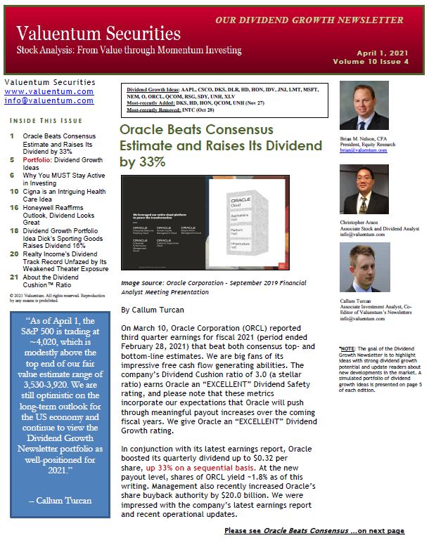 Members Only: The April Edition of the Dividend Growth Newsletter Is Now Available