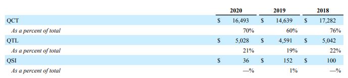 Image Shown: Qualcomm’s forward-looking dividend coverage is rock-solid and supports our forecasts that the firm will steadily grow its payout over the coming fiscal years. Covering Qualcomm’s Business Profile Qualcomm has two primary business operating segments, Qualcomm CMDA Technologies (‘QCT’) and Qualcomm Technology Licensing (‘QTL’). The former develops and supplies semiconductors for mobile devices, broadband gateway equipment, automobiles, consumer electronic devices, wireless networks, and various Internet of Things (‘IoT’) devices using 3G/4G/5G technologies and other technologies. The latter licenses out Qualcomm’s intellectual property (‘IP’) from its vast portfolio, which includes patents that are essential in supporting certain wireless operations. Combined, QCT and QTL have historically represented 80%-90% of Qualcomm’s annual revenue (they accounted for over 90% in fiscal 2020). For reference, Qualcomm’s fiscal year has historically ended in late September. Image Source: Qualcomm's fiscal 2020 10-K. The company’s 'Qualcomm Strategic Initiatives' business operating segment makes strategic investments, largely through its 'Qualcomm Ventures' unit, which focuses on early stage companies mainly in the artificial intelligence (‘AI’), automotive, digital healthcare, IoT, mobile, enterprise, networking, and other realms. Generally speaking, these are investments in non-marketable equity securities and convertible debt instruments, though occasionally these companies go public, so this segment of Qualcomm also holds (from time to time) some marketable securities as well. According to the company, Qualcomm Ventures “intend[s] to pursue various exit strategies for each of our QSI investments in the foreseeable future.” Additionally, Qualcomm Government Technologies (‘QGOV’) and Qualcomm’s cloud AI inference processing initiatives represent some of the company’s other significant operations. QGOV “provides development and other services and sells related products to U.S. government agencies and their contractors” though not much is made public concerning these operations (by design as this is a nonreportable segment of Qualcomm’s, likely for strategic/confidential purposes). Historical Financial Overview Though most of Qualcomm’s revenues have historically been generated from its QCT segment and that will likely continue to be the case going forward, the company’s QTL segment has historically been the single largest source of its operating income generation. Going forward, considering the licensing deals Qualcomm recently struck with Apple and Huawei, Qualcomm’s QTL segment should continue to put up solid results. The upcoming graphic down below highlights Qualcomm’s segment-level financial performance during the past few fiscal years.