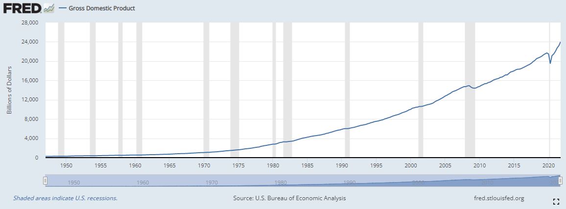 Image: "Gross domestic product (GDP), the featured measure of U.S. output, is the market value of the goods and services produced by labor and property located in the United States." Image Source: BEA Above is a long-term chart of the gross domestic product (GDP) of the United States in the post-World War II period. The shaded areas are recessions. You can see how far we have come from the depths of the Great Financial Crisis in 2008-2009, and how far we've come from the COVID-19 shutdowns. The United States' economy is roaring, and while nominal GDP may be (positively) impacted by stronger levels of inflation, again, that is not necessarily a bad thing for companies that can manage their cost structure effectively to drive real earnings expansion.